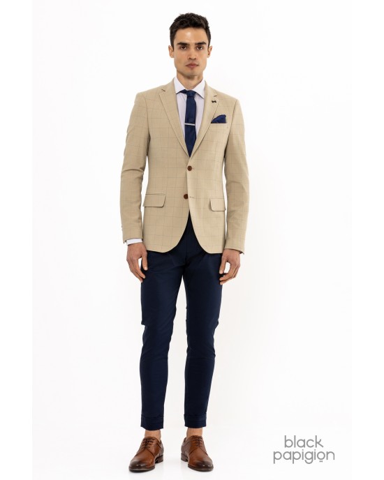 Σακάκι Black Papigion μπεζ με καρό μπλέ